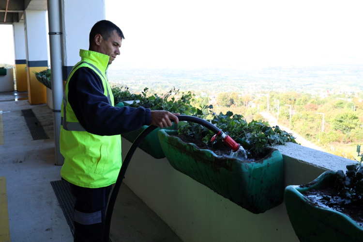 Öte yandan Park ve Bahçeler Dairesi Başkanlığı’na bağlı ekipler, 6 katlı otoparkta kapsamlı bir bitkilendirme çalışması gerçekleştirerek, alanı daha yeşil ve daha estetik bir görünüme kavuşturdu. Çalışmalar kapsamında, otoparkın çeşitli noktalarına 192 adet hedera sarmaşığı dikildi. Hızlı gelişen ve dayanıklı yapısıyla bilinen sarmaşıklar, zamanla duvarları sararak yapı üzerinde doğal bir yeşil doku oluşturacak. Bu sayede hem beton görünümün yumuşatılması hem de ziyaretçilerin karşılandığı alanın daha sıcak ve doğayla uyumlu bir hâle getirilmesi hedefleniyor.